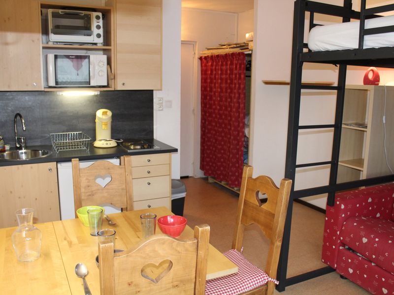 Studio 2/3 Personen volledig gerenoveerd, gelegen op de 6de verdieping met lift, aan de voet van de pistes. Woonkamer met 1 BZ en mezzanine voor 2 Personen. Badkamer met douche.